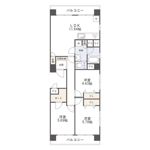 角部屋で両面バルコニー付き広々3LDK!かわいいペットと一緒に生活