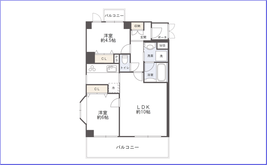 - 10.11㎡ 西向き 東向き